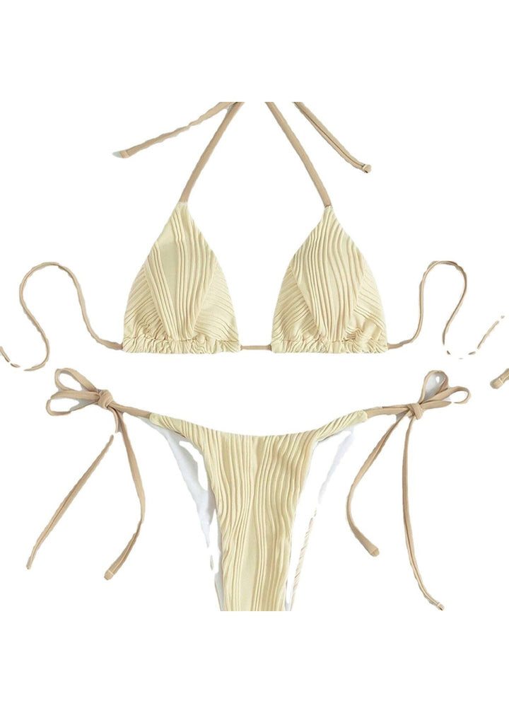 2024 Sexy Apricot Striped Bikini Lace Up Swimwear Set