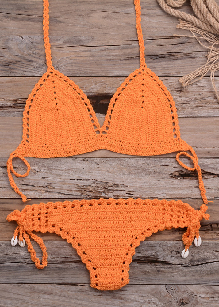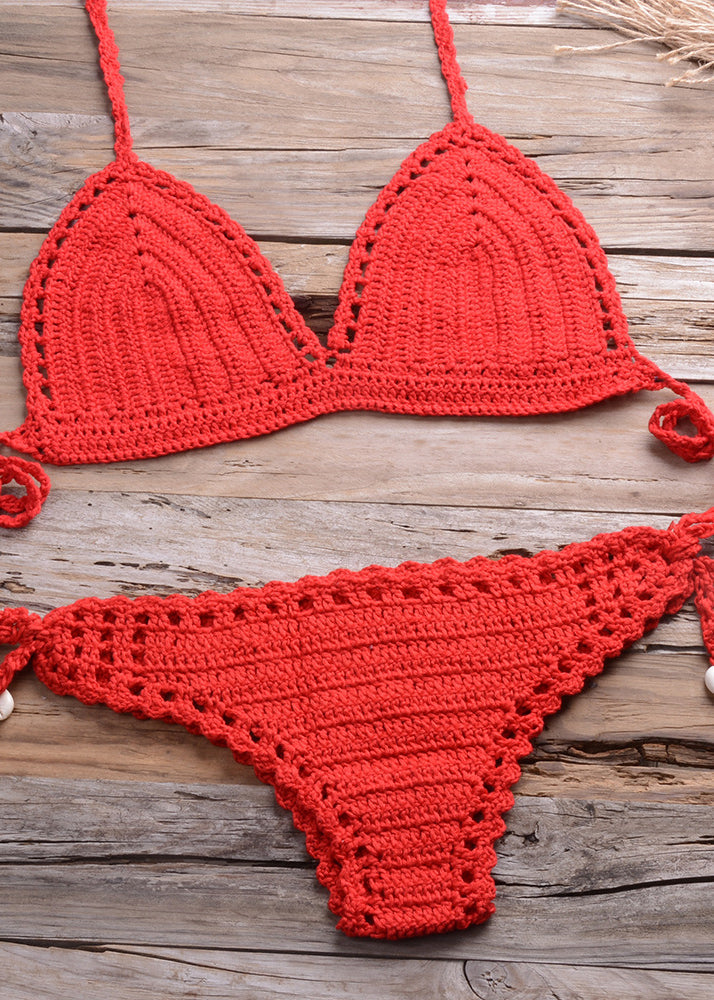European And American Handmade Blue Hollowed Out Beach Swimwear Set