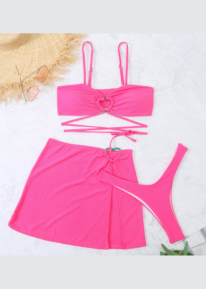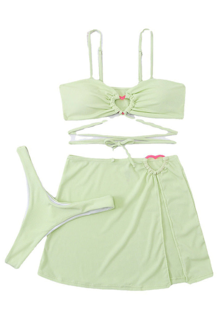 Fashion Light Green Hollow Out Lace Up Swimwear Set