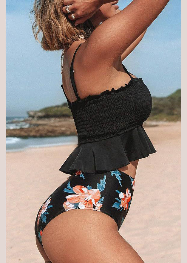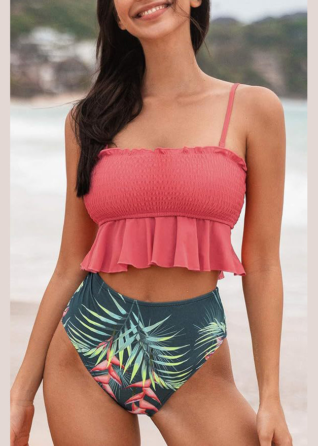 Hot Style Yellow Ruffled Print Swimwear Set
