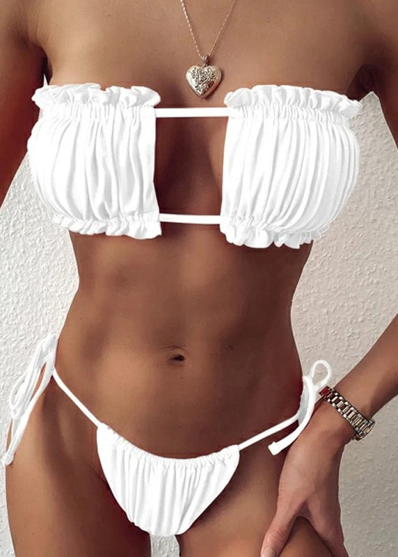 Sexy Green Leopard Pleated Printed Backless Bikini Swimwear Set