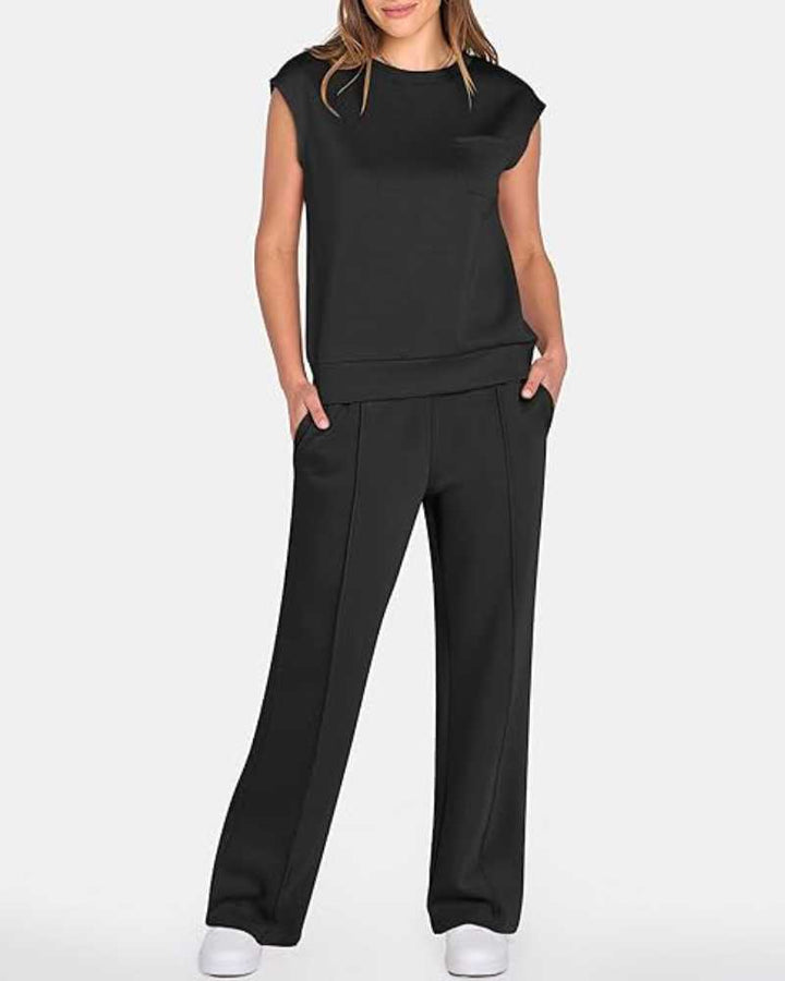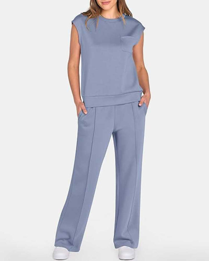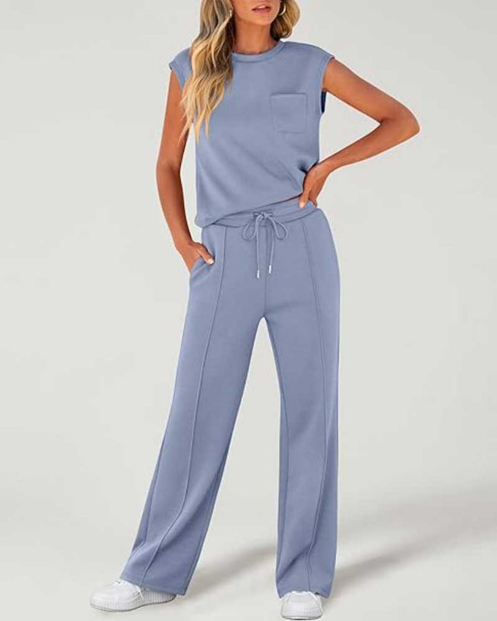πWomen's Solid Tank Top & Drawstring Waist Wide Leg Pants Two-piece Set