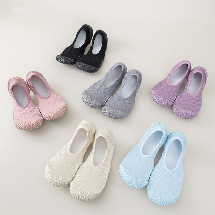 These versatile indoor shoes feature a wear-resistant soft bottom, offering excellent traction and durability for various activities, from yoga and Pilates to barre and dance, ensuring long-lasting performance.