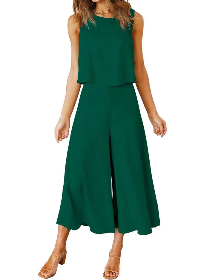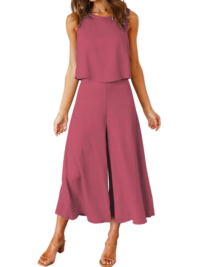 Women's Sleeveless Tank Crop Top Wide Leg Flowy Pants Set (Buy 2 Free Shipping)
